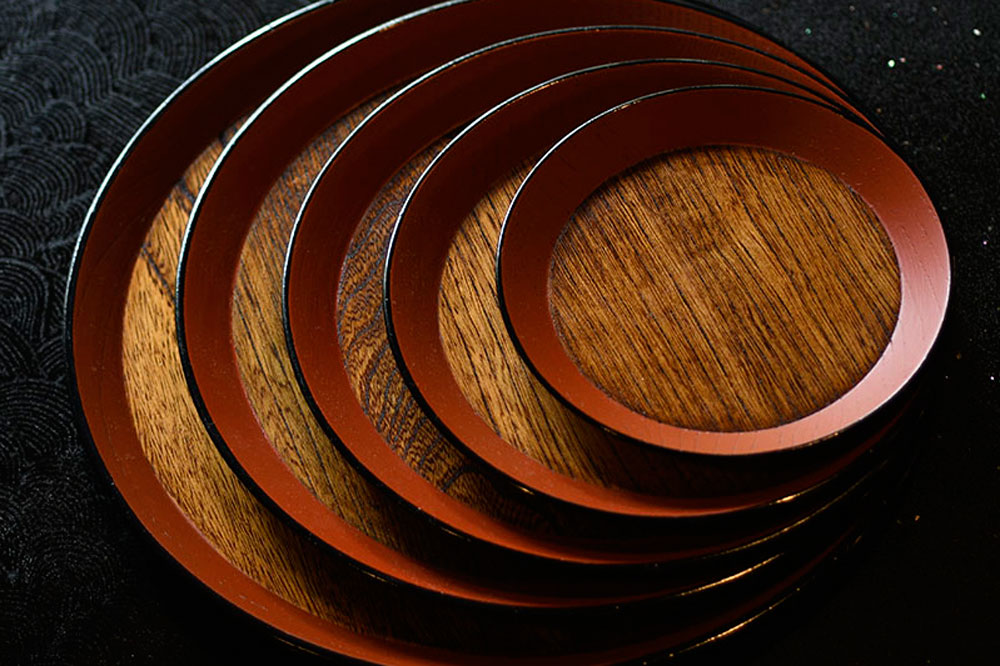 手に取ると、確かに表面は滑らかで、縁にも欠けはない。重厚感がありながら、手に馴染む。この盆が一世紀もの時を超えて、今も現役で使われ続けている事実が、紀州漆器の品質の高さを物語っていた。